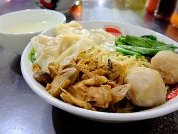 Mie ayam atau sering juga disebut dengan bakmi ayam merupakan salah satu street food Indonesia yang terbuat dari mie kuning yang direbus dan diberi daging serta sayuran di atasnya. Terkadang, mie ayam juga sering ditambah dengan bakso, pangsit, ataupun jamur untuk menambah tekstur serta cita rasa dari mie ayam. Meskipun mie ayam berasal dari Tiongkok, kini mie ayam udah jadi salah satu makanan jalanan Indonesia yang paling khas dan paling dicari oleh para pecinta kuliner. Mie ayam di Indonesia yang paling populer berasal dari Wonogiri, Jawa Tengah.